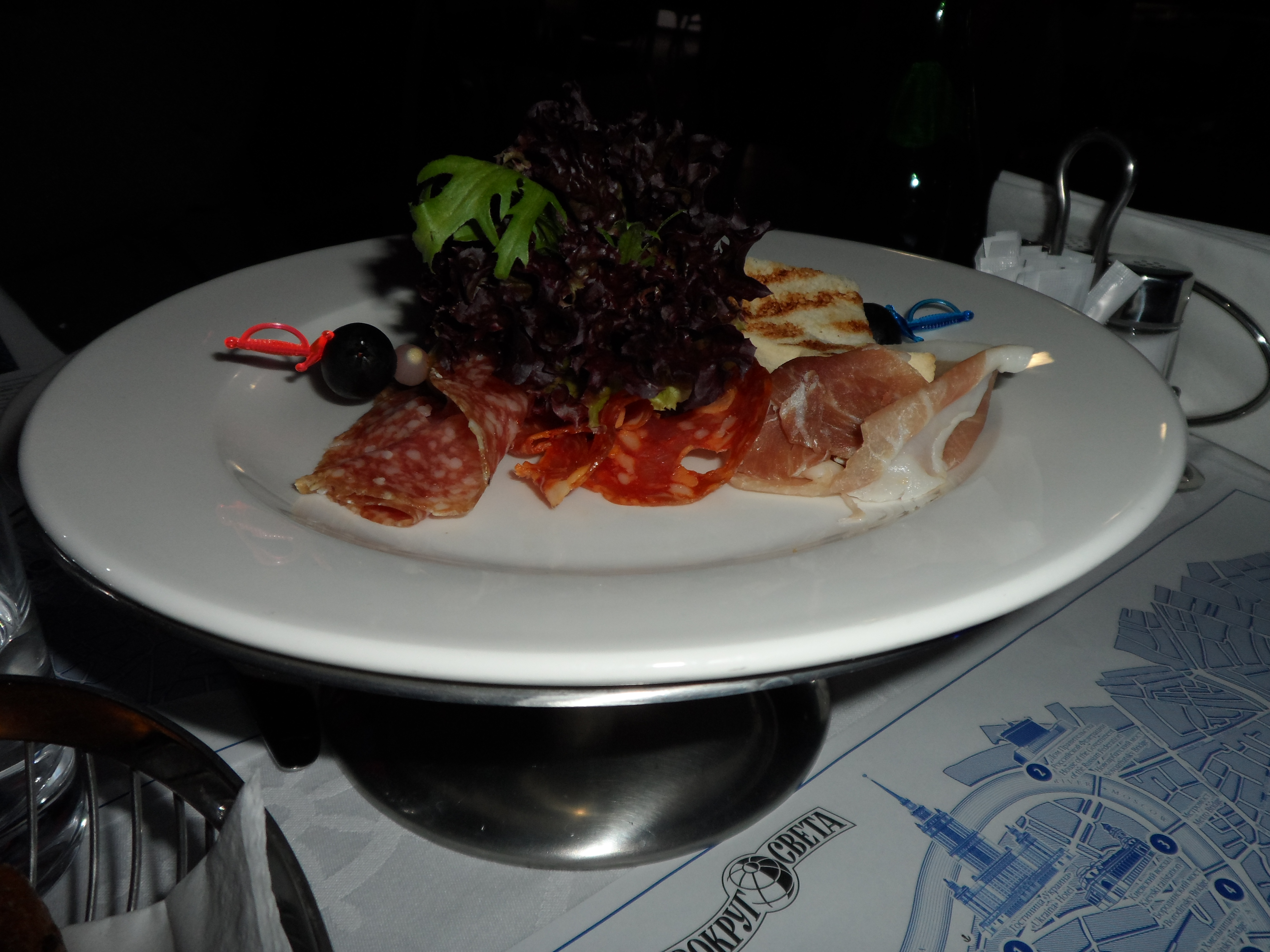 First they ordered us some Italian starters, containg meat, cheese and fruit. All fresh all good tasting not Russian, but I love Italian so perfect.
