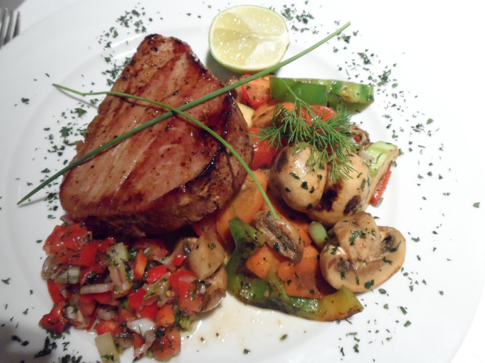 And then the chef came to my table with the suggestion of grilled tuna and a ratatouille of grilled vegetables, Yummie, sounds good after a week of eating just powdered soups and shakes….