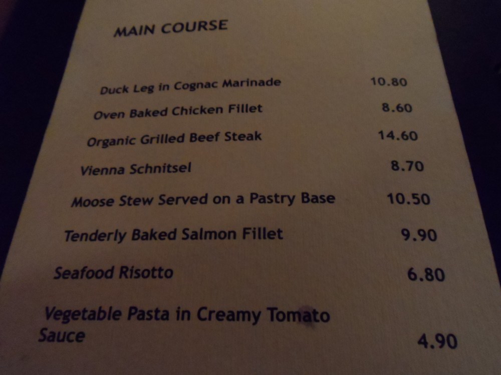 The restaurant looked warm and friendly and the first thing I saw outside on the menu was Moose, so I wanted to go and taste that. Immediately I was greeted by an overactive bouncing ball, American style ADHD approach of the waiter, always better then some passive teenager not looking at you…