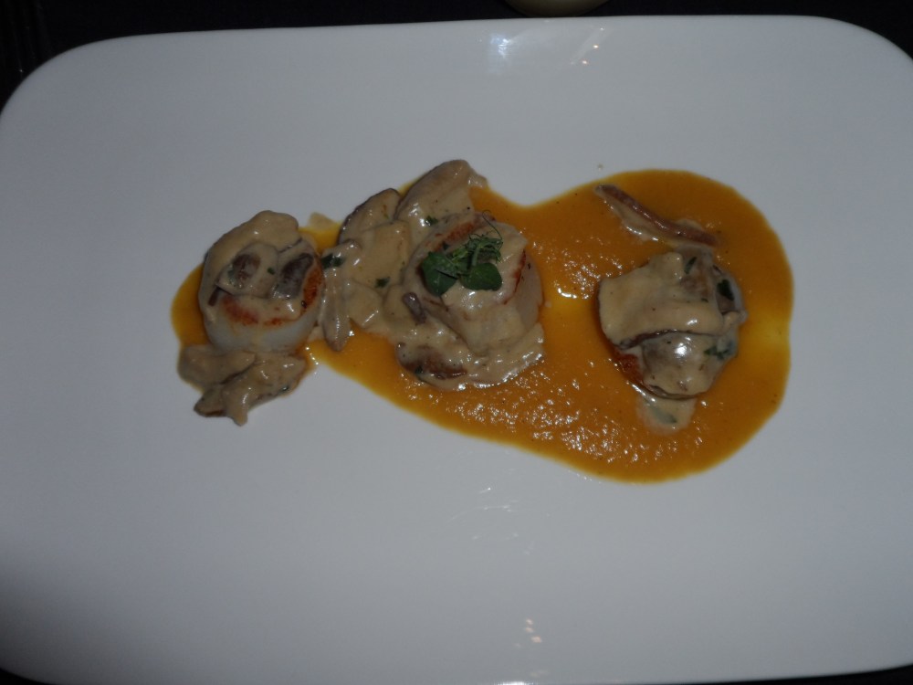 The Bruschetta being so rich with garlic pesto, fresh Parmesan, tasty tomatoes just Bruschetta as it should always be, for me the scallops grilled nice, soft on the inside, nice and glazy as well. Creamy soft pumpkin sauce and the funghi as a nice complementary part. Only thing is that is was really “haute cuisine” so small portion for a big price.