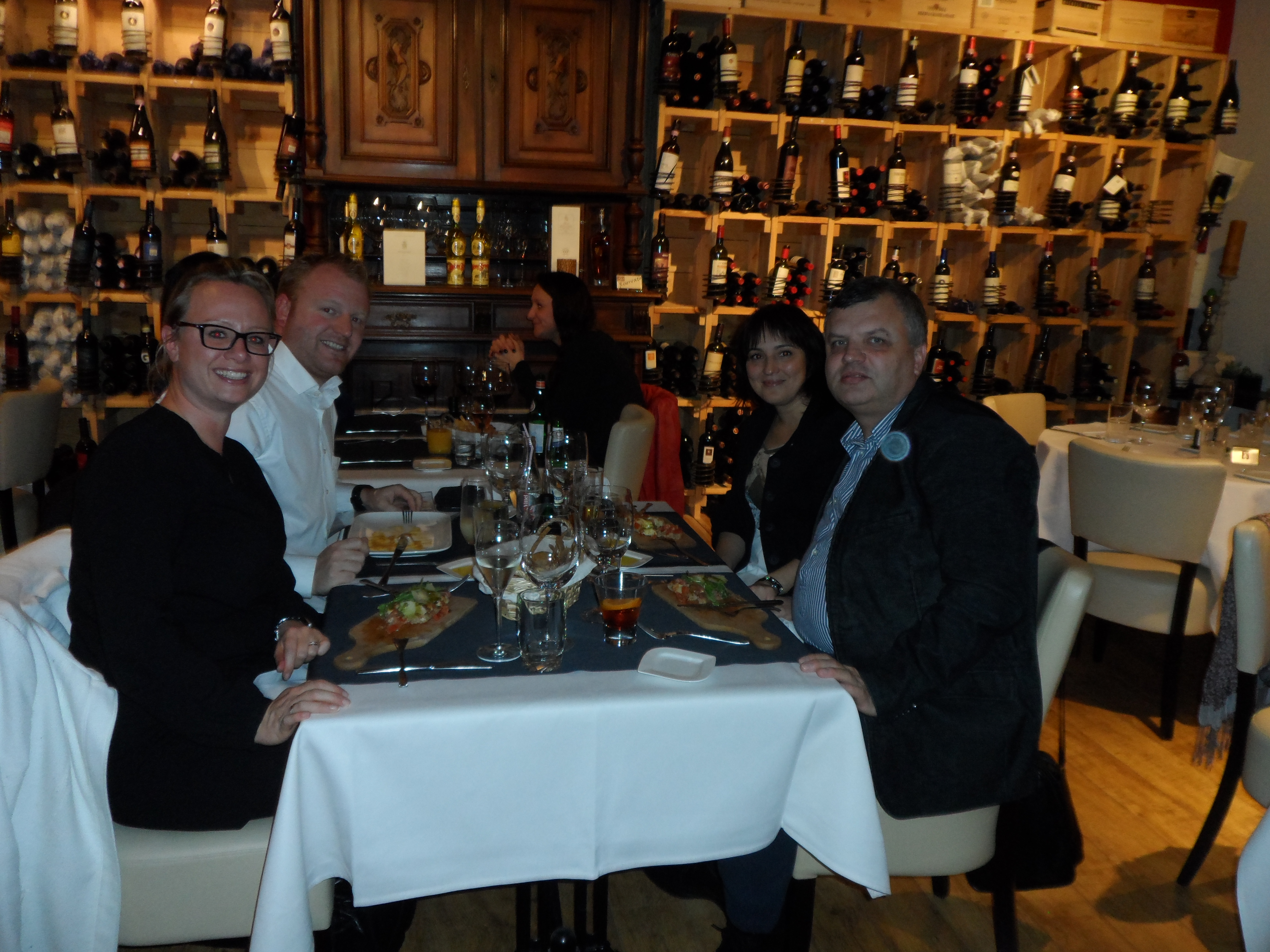 Had a nice opening drink, my guests drinking an Aperol Spritz and for me a Ricard. quickly getting the menu as well, glad to see they changed the suggestions once more to typical dishes for the fall. I think they change it every 2 to 3 months. Suggestions such as venison carpaccio with foie gras, grilled scallops with funghi porcini and pumpkin sauce (mine!) or fresh ravioli with deer and cranberry sauce or “artists pasta” with 4 kinds of winter pasta with 4 winter sauces or fresh partridge alla boscaiola with fresh pasta….hmmmm.