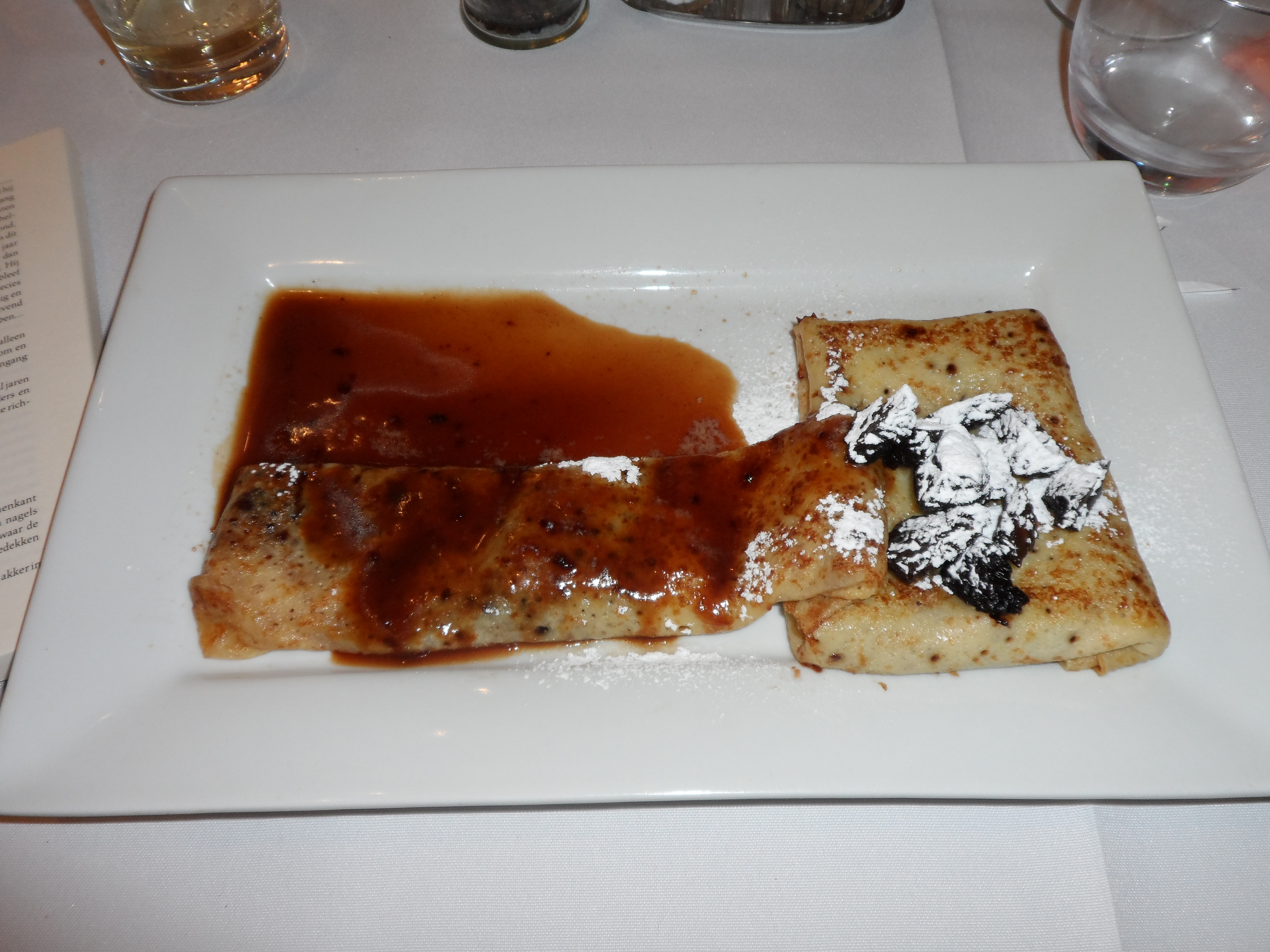 I ordered the special one, pancakes filled with plum jam and flambéed with plum brandy, my 6 year old son can make that, you cannot fuck this up, can you?