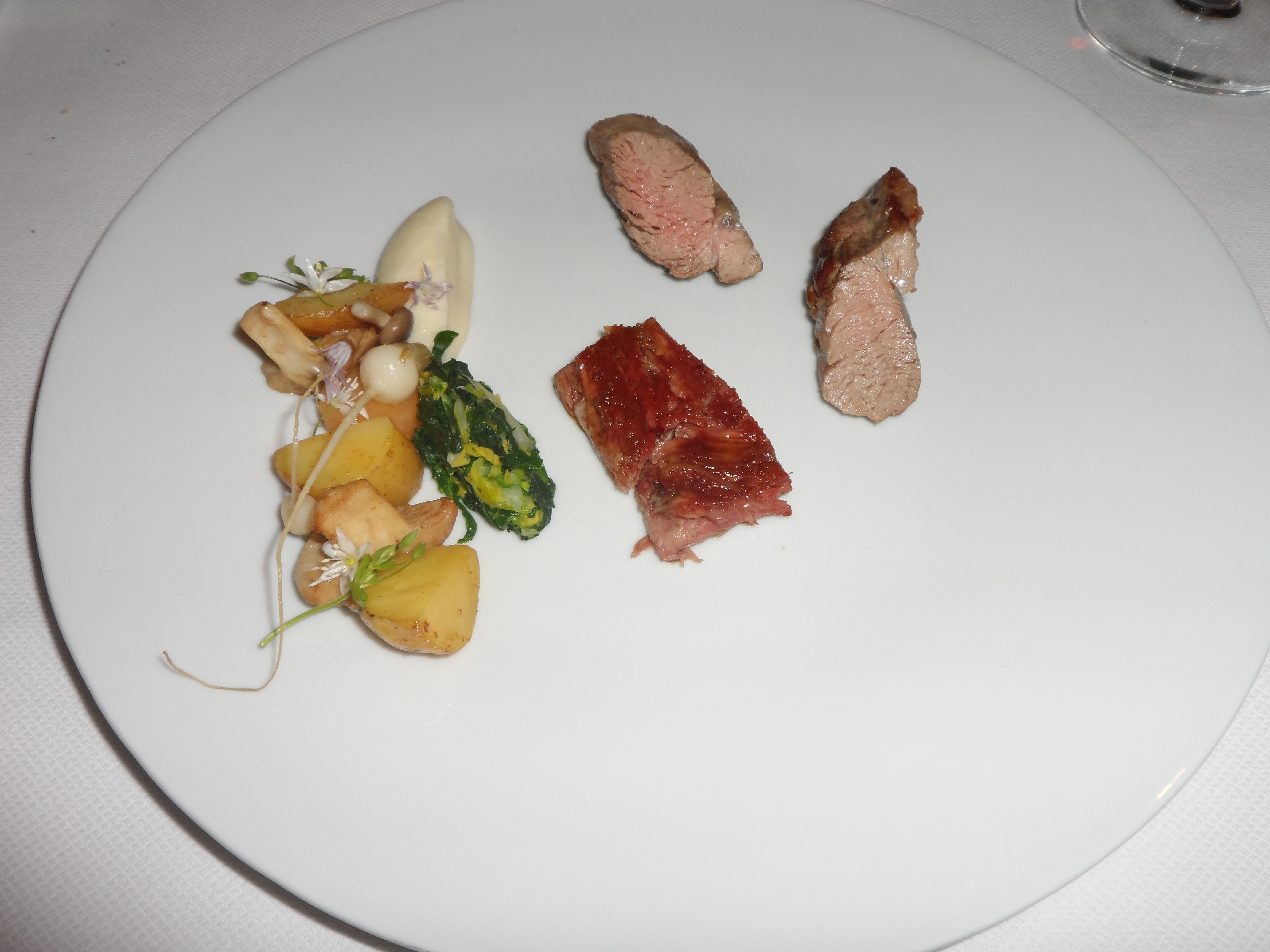 Too much to mention…. 2 beautiful light fresh amuses, nicely grille langoustine tails with lavender cream aspergus and spring beans – coquilles with green aspargus – suckling calf 2 ways (sorry for not showing the delicious jus – strawberry fantasy with cotton candy, special white strawberry and many textures of strawberry (best dessert this year so far!)