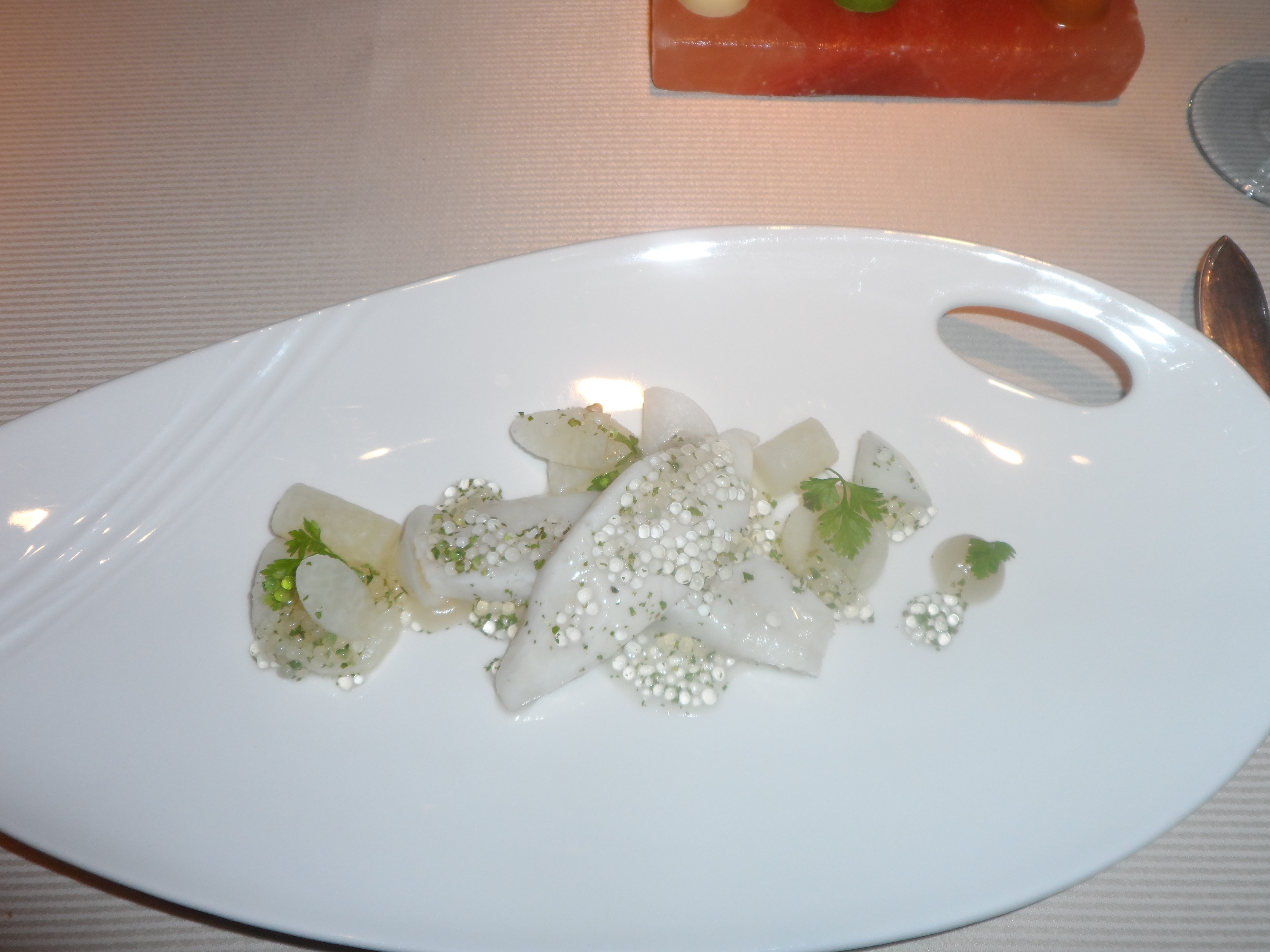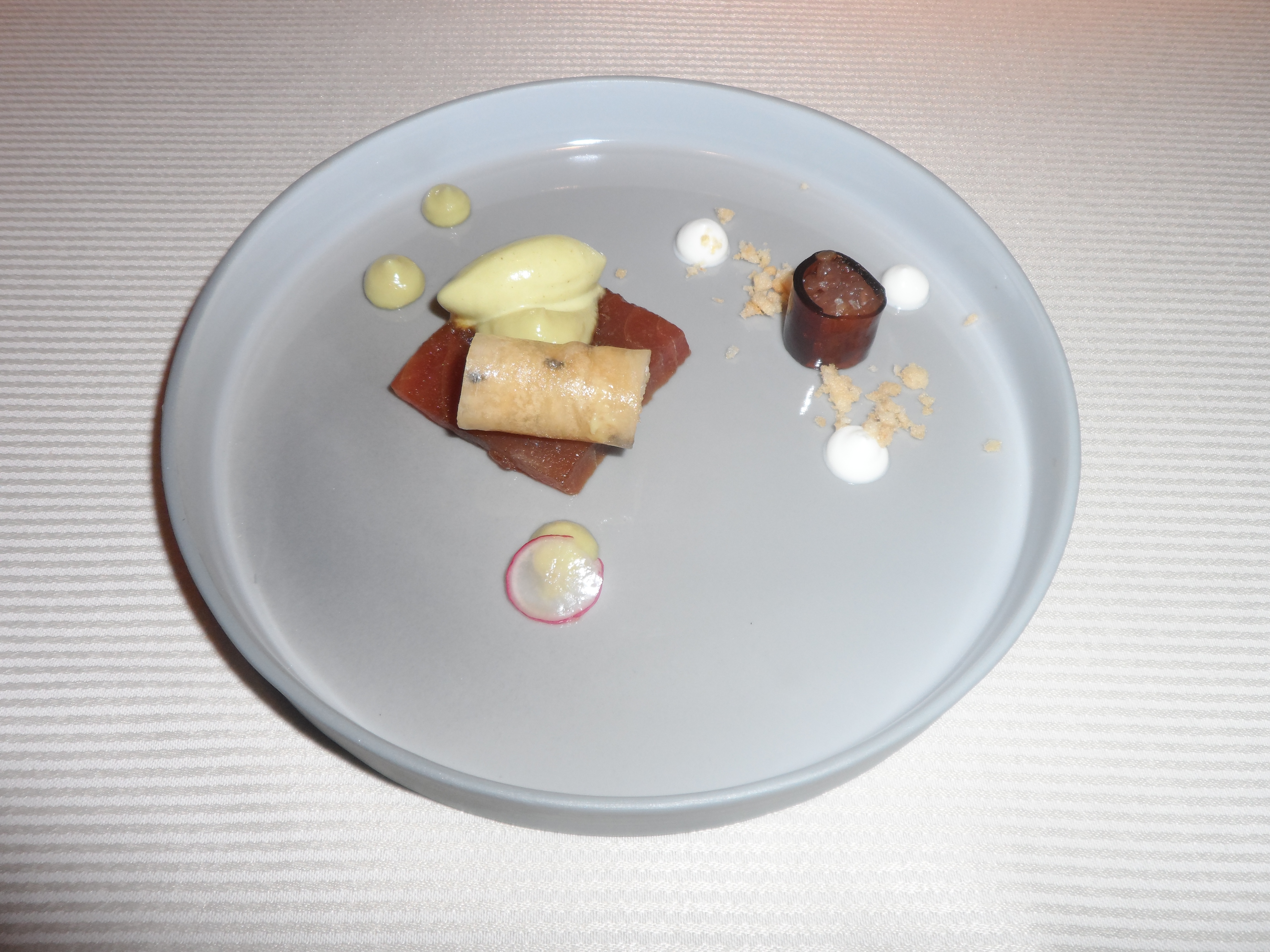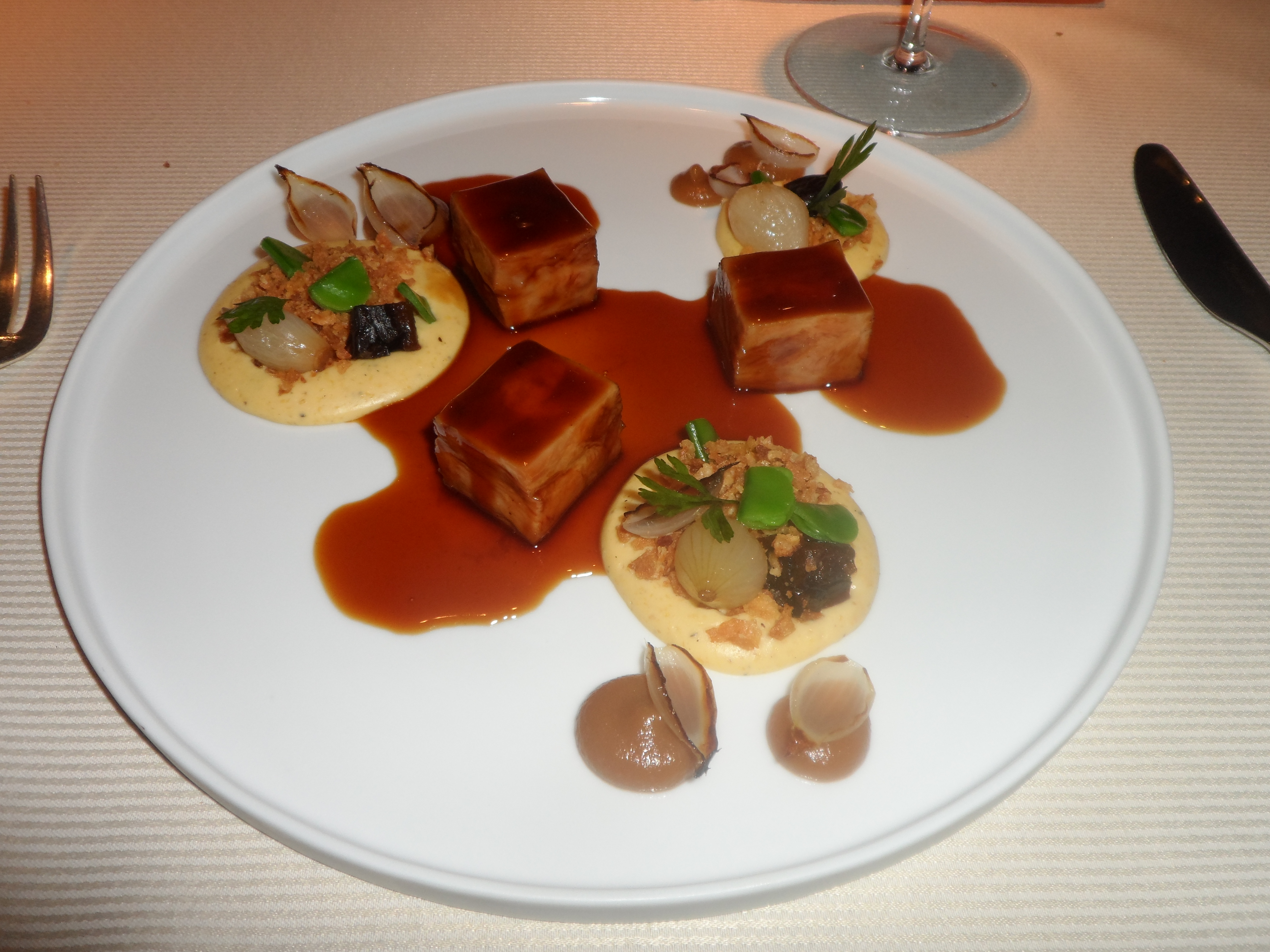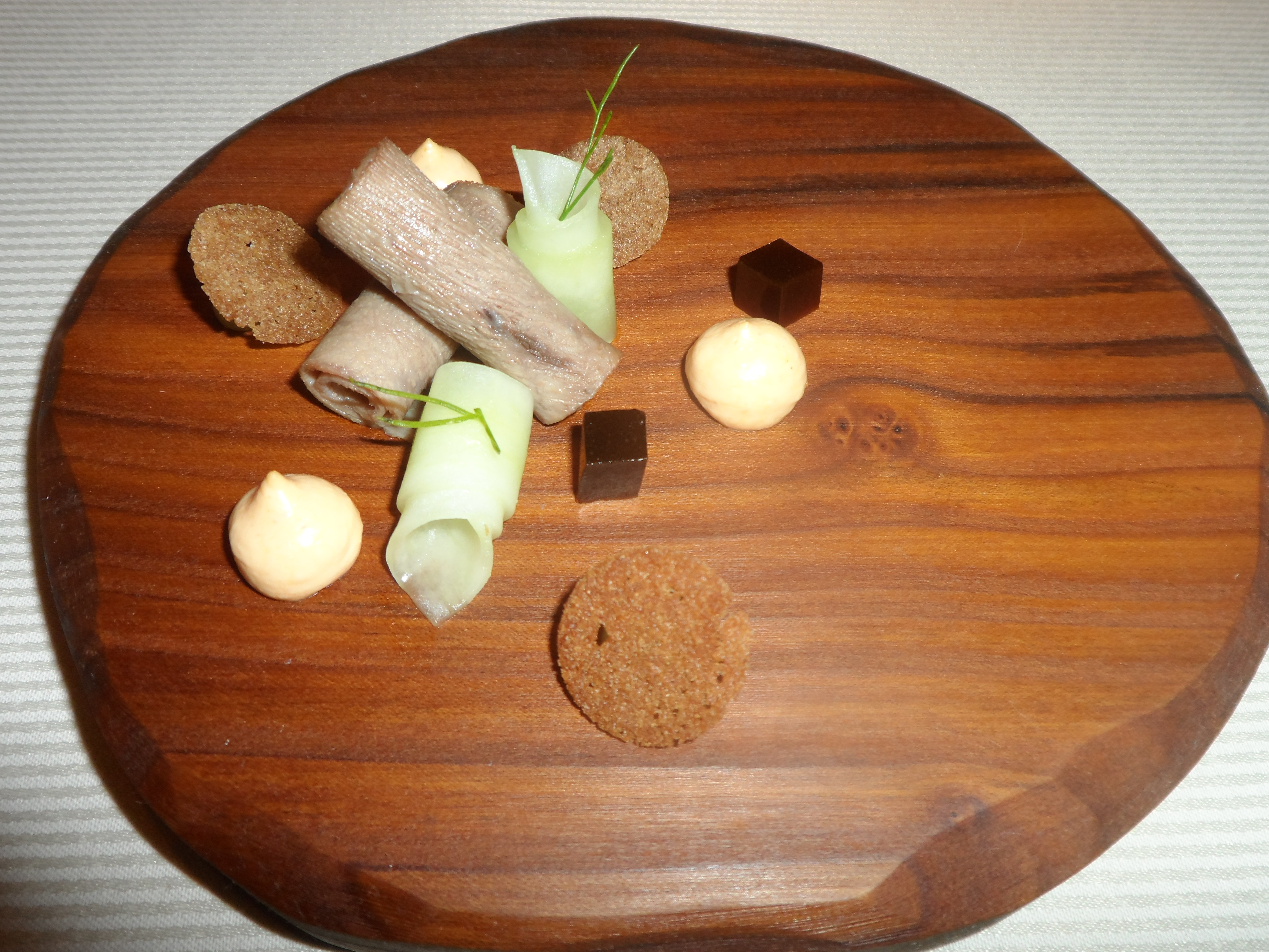 So what did I eat at this great restaurant…. look at the pictures I would say 😉 I still remember the slow cooked pork belly, and also the chocolate death at the end…. I also remember that most dishes were absolutely great !!! Except for the starter with dry lentils and a snotty substance in between… And then just look at the great presentation of 5 types of butter, WOW.