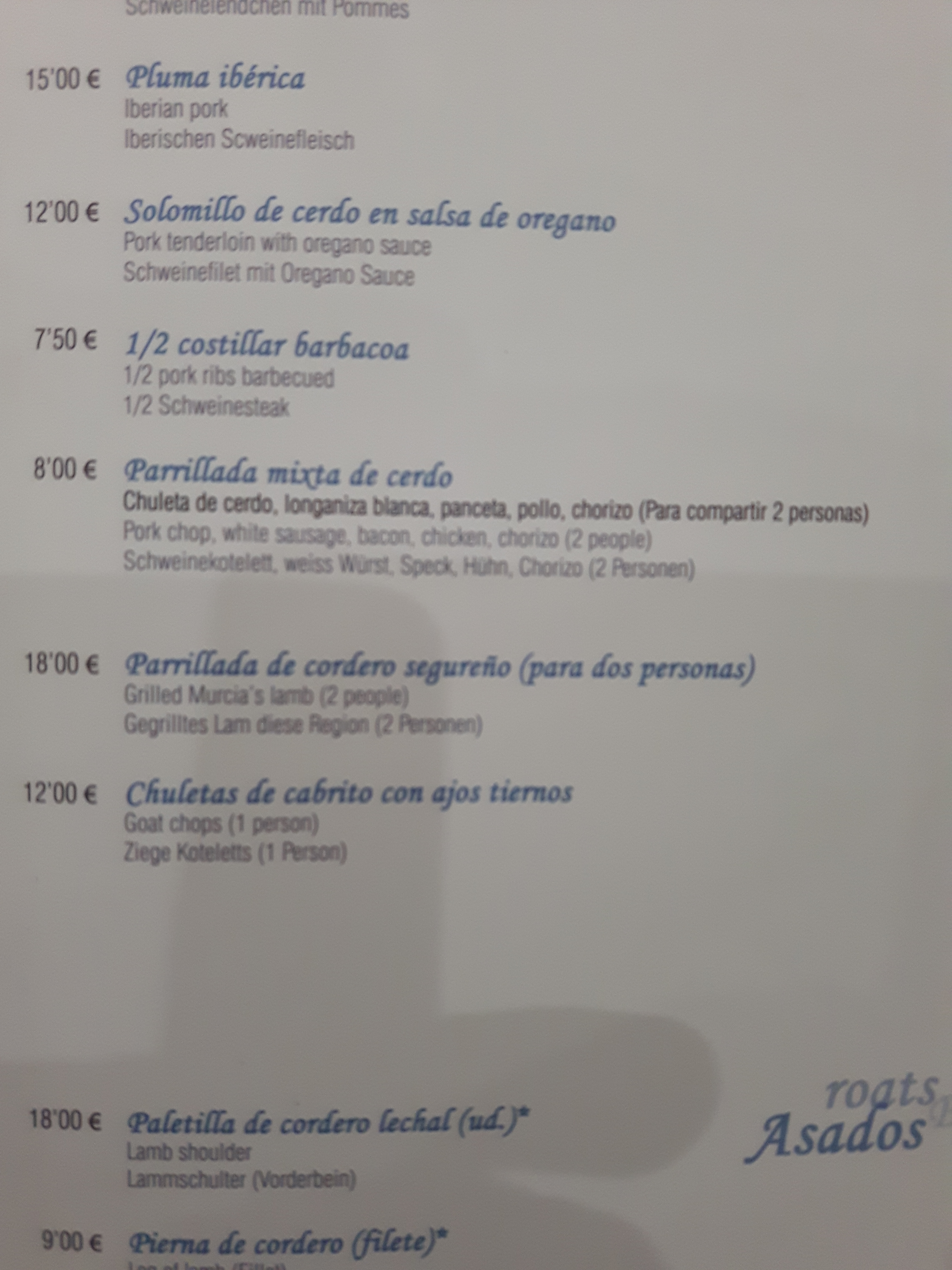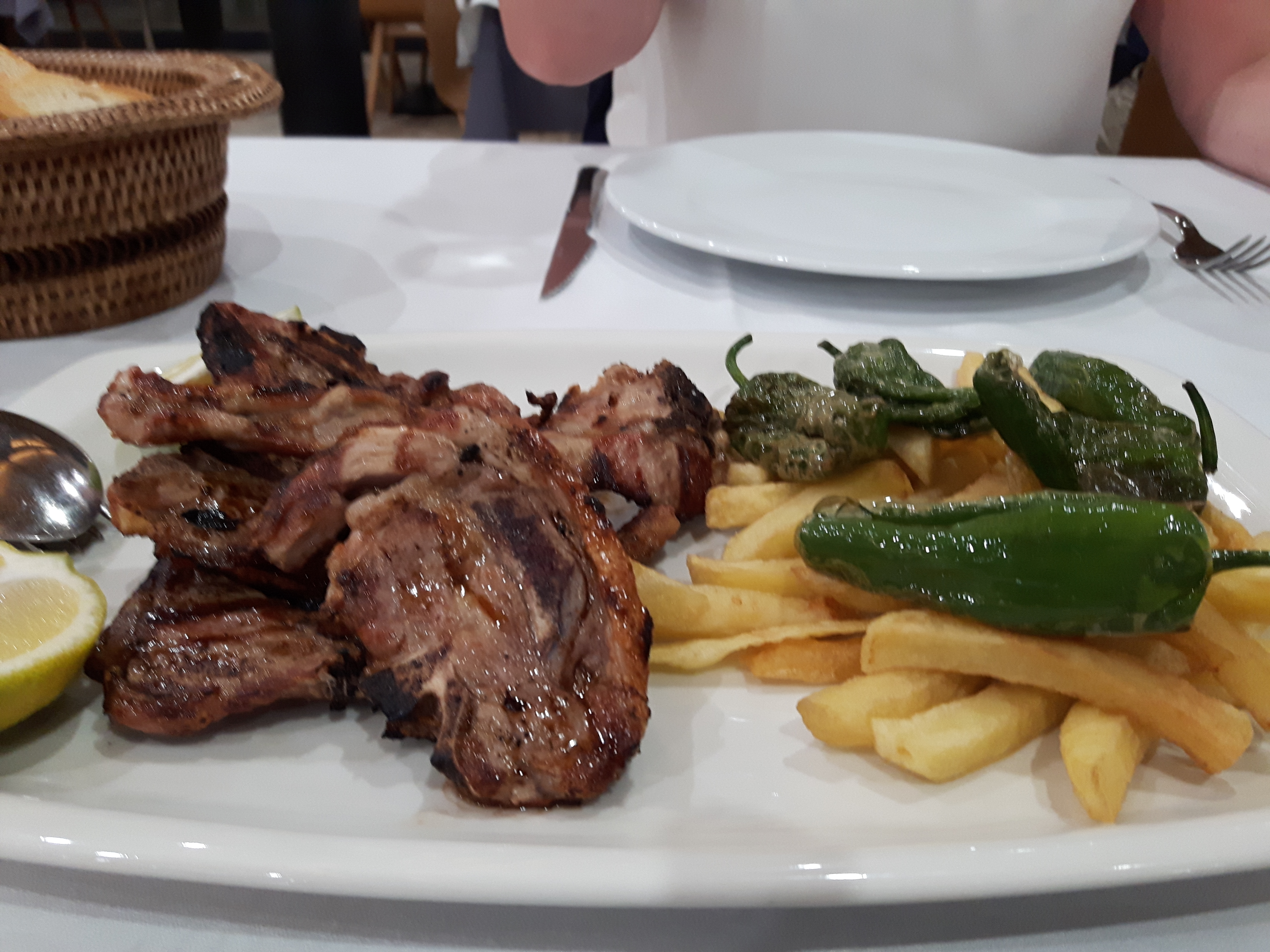Food: Combination of typical Spanish with boring and flat French fries topped with a grilled pepper, on the other side great solomillo on this menu combined with tempura vegetables and “foie” and then the choice of Pedro Ximenez or even chocolate sauce… (WOW) so difficult to give it a rating but being positive I would give it a 7.5 out of 10
