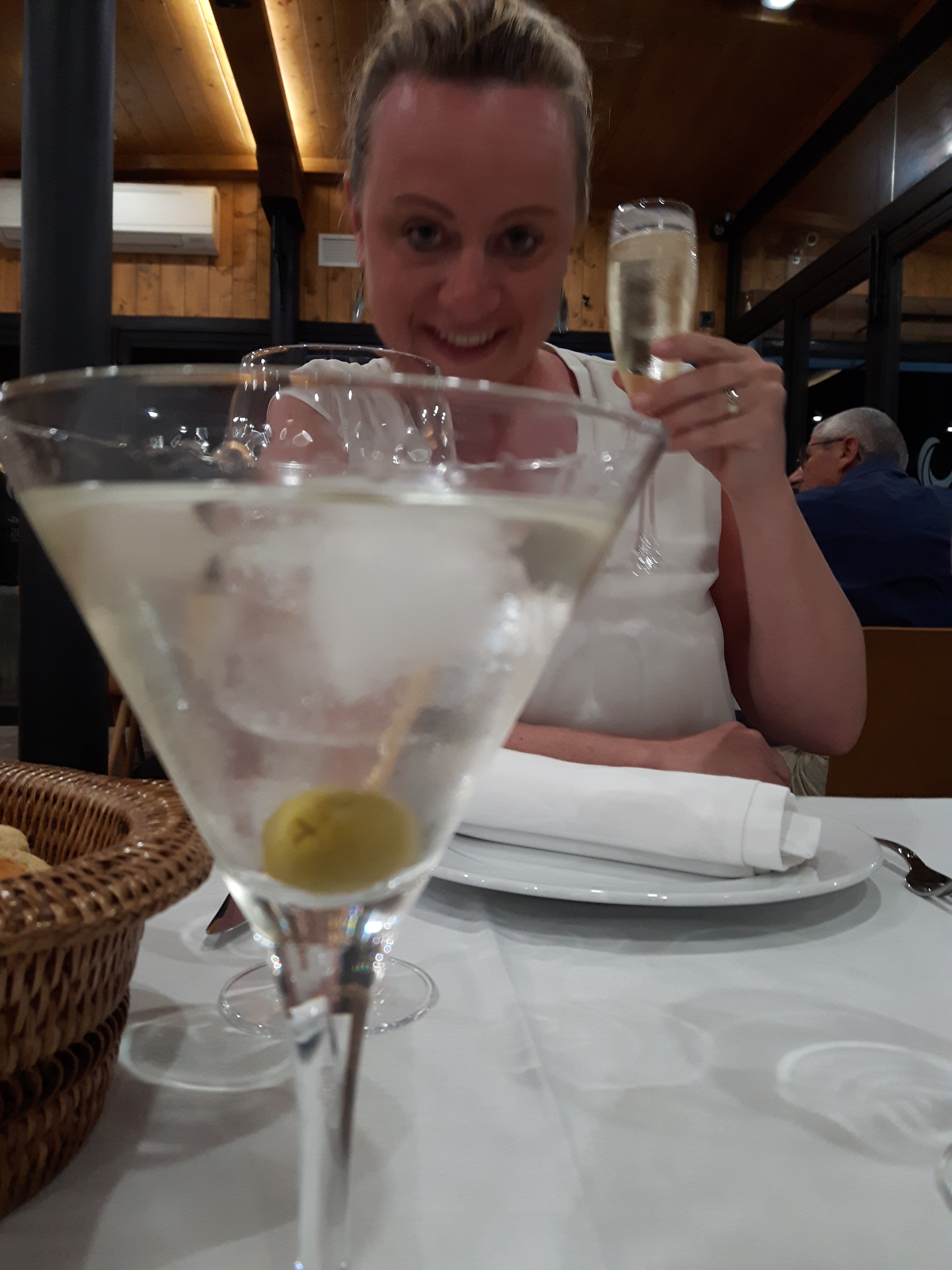 To start an original perfect Vodka – Martini with 1 olive….. old school.