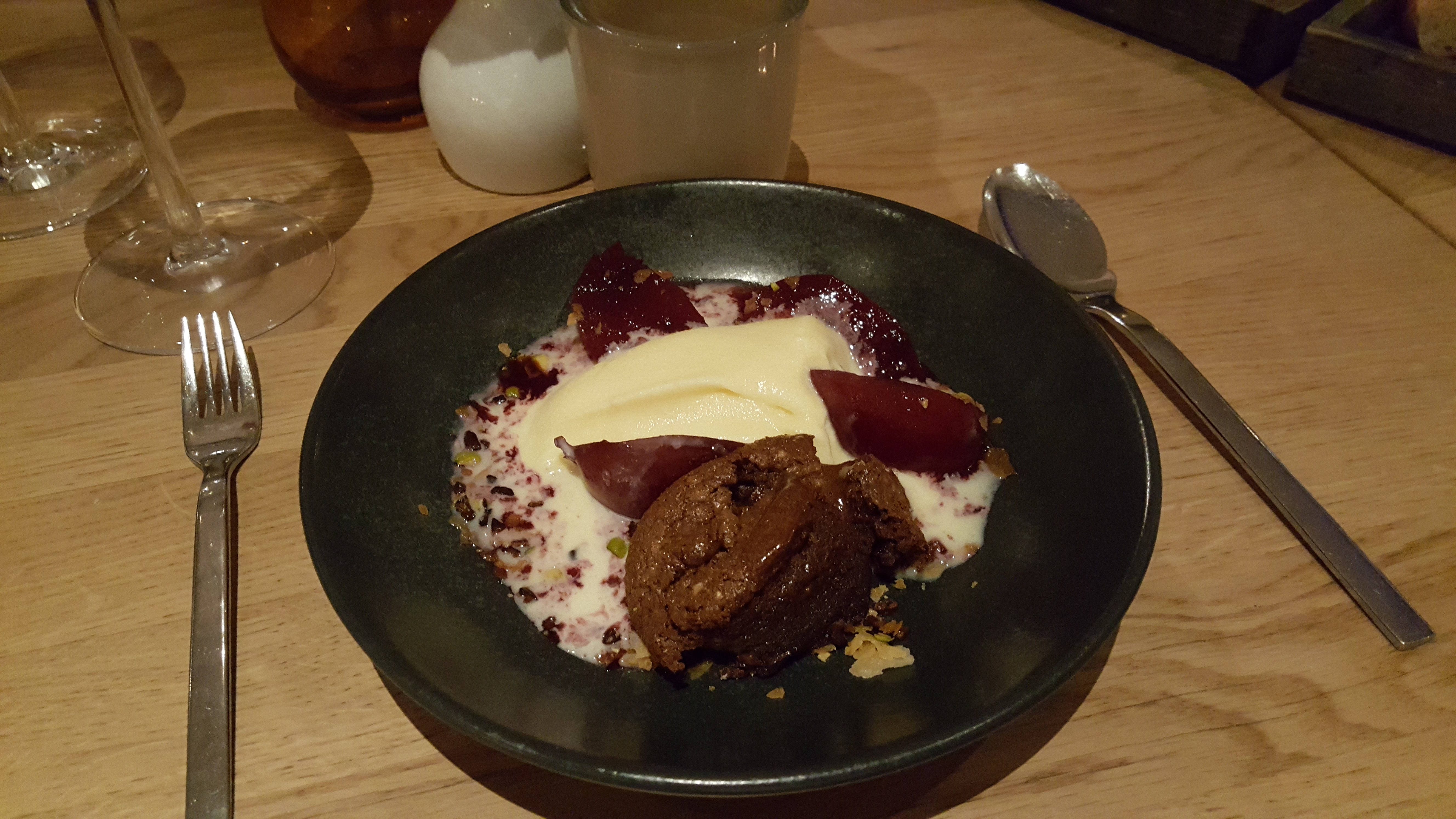 Food: Let me describe it as: He tries! But that says it all… yes it was good, no it was not perfect. Dressing a plate doesn’t automatically mean it has a balanced taste. It all tasted okay and for the rest of the table it was perfect, but I’m too critic. It lacked mostly acidity in every dish. Flavours were there, but should be brought to the next level… De pork belly was nice and tender, but all too German… Main course same story, too simple, missed complexity….dessert? Can’t go wrong with chocolate and hazelnuts… (6.9 out of 10)