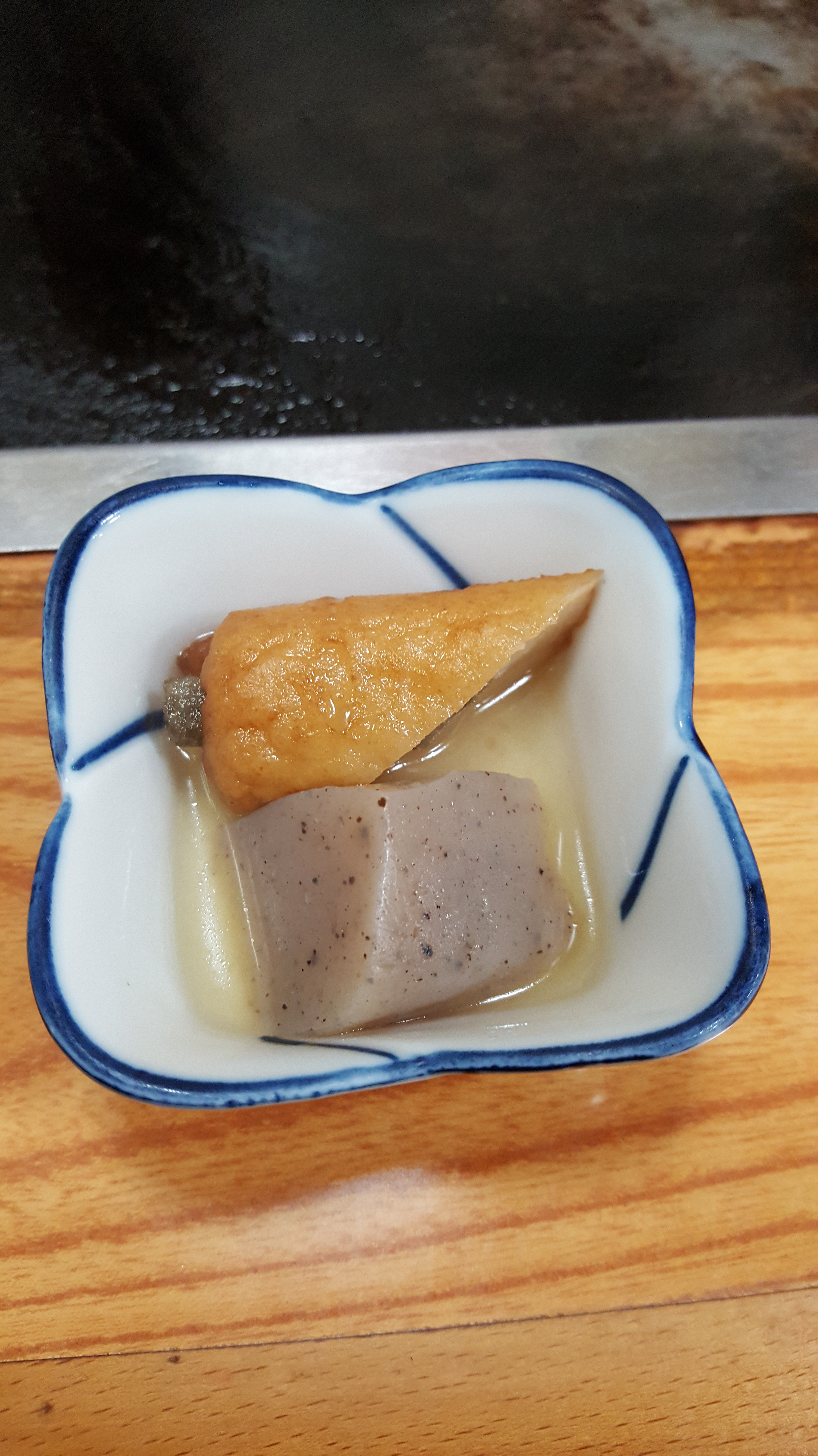 So when in Ginza-Tokyo, go to the Monterrey hotel, keep it on your left, take the 1st left and walk about 150 meters…. on your left you will recognise the 2 older people that are running this show… No matter what the age was (75+?) They were cooking with love and devotion, and that is all you need in life!