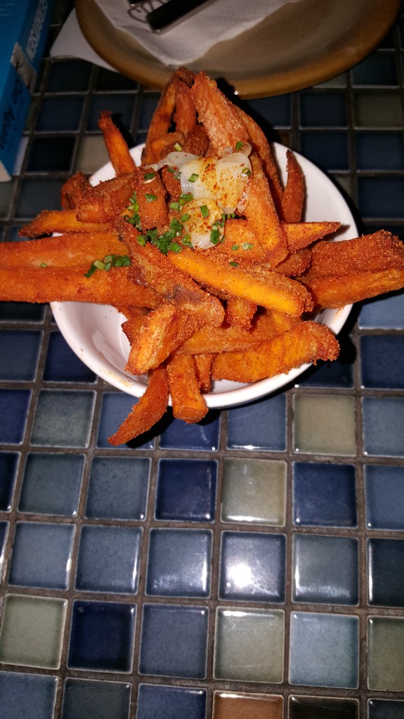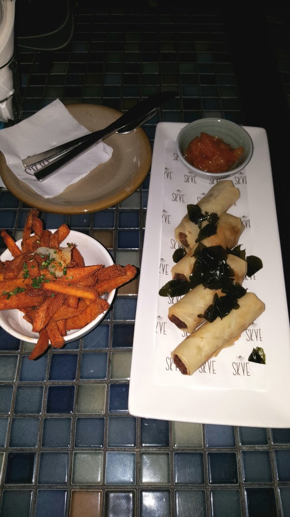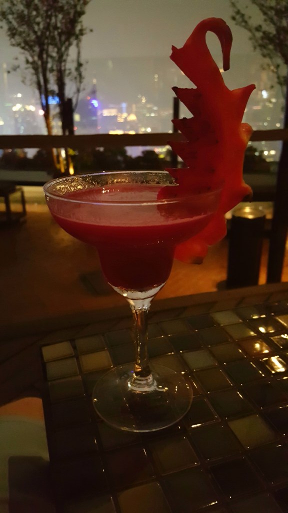 So quickly back downstairs, into the shop for some shoes and back up again…. Weather was terrible, views compensated that…. Drinks were amazing food just good but too much for me. Had a crazy not matching combo of Bruschetta with Prosciutto and truffle, next to it duck spring rolls with mango chutney and sweet hand cut garlic fries. All fine, basic food. The drinks I had were the very good dragonfruit margherita and my new favourite cocktail of this year, the godfather (Jack D. + Amaretto and a pickled cherry),