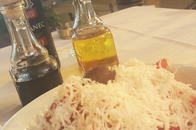 So in the capital, near the central square went to an international Italian / Macedonian restaurant. You can not miss it since it is HUGE! just right of the HUGE Alexander the great statue… (what a view).