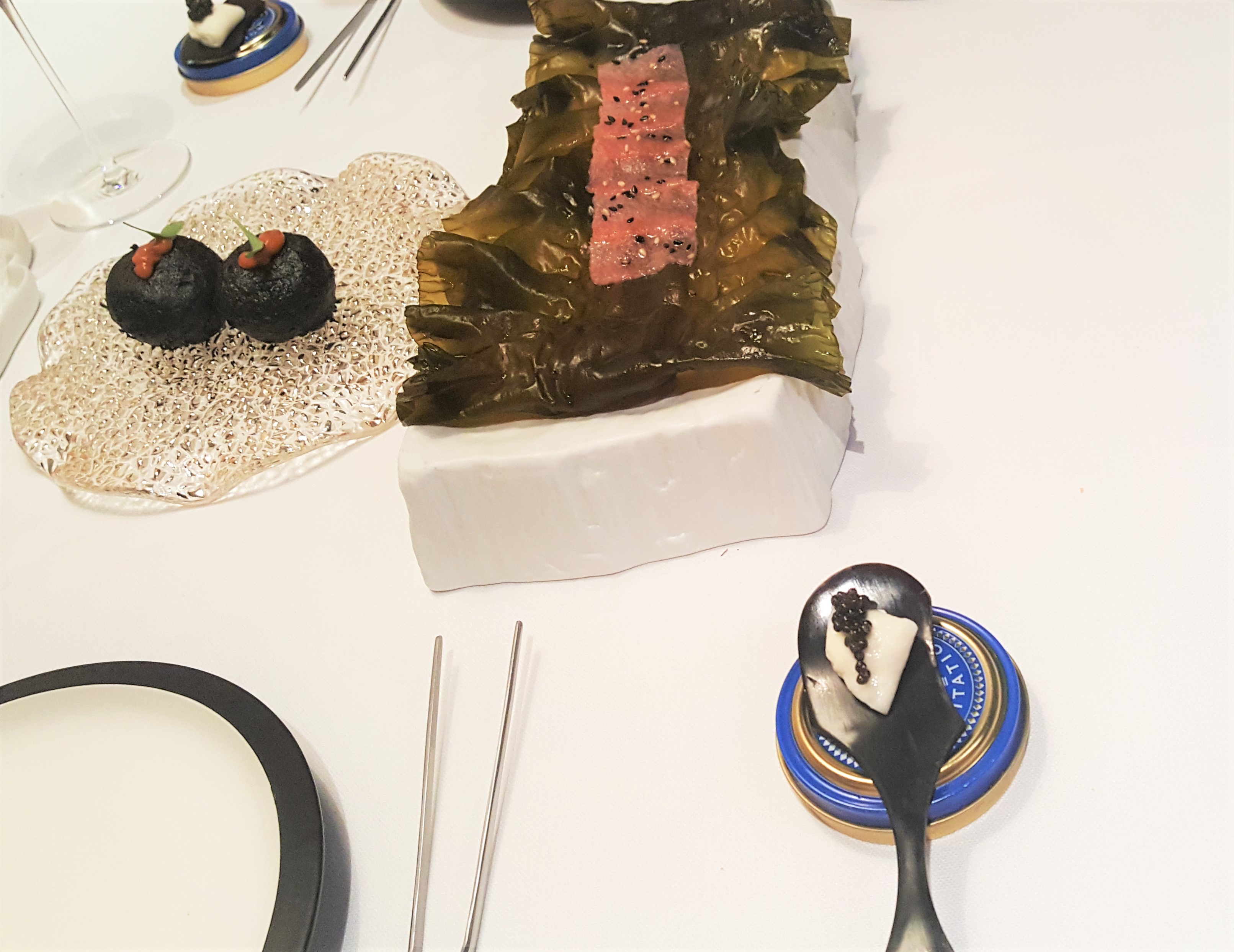 Still not done…. sea urgent croquet (less of them all), a sneaky surprise…..look at the raw salmon?! It is fake….hahaha was thinly sliced watermelon! with sesame seeds, very fresh! And in the bottom my new snack combo…. mozzarella di buffalo combined with caviar…!!! So damn simple, why did I not think of that?!