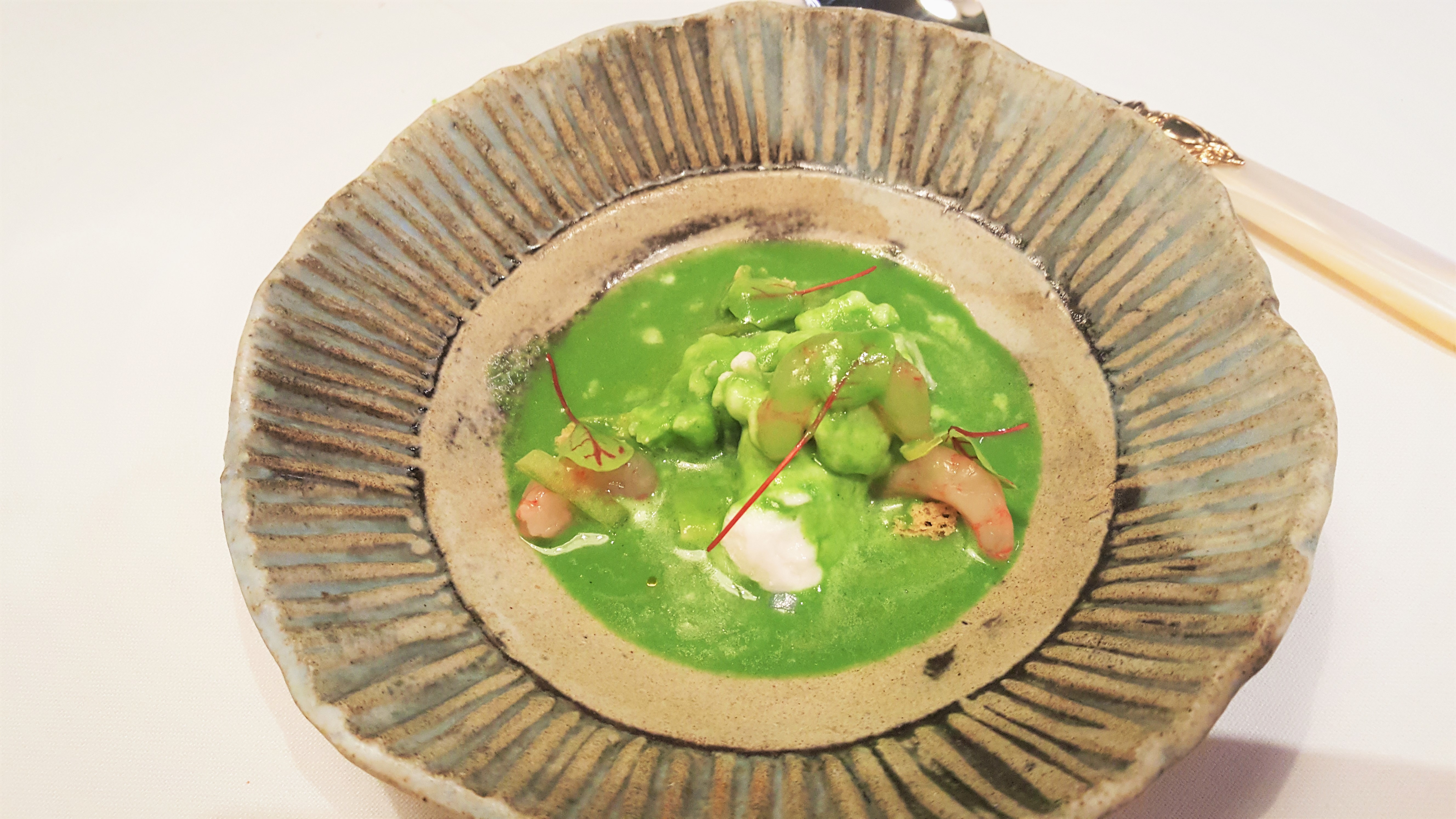 How about a green tomato gazpacho?! packed with flavours and acidity… no remarkts? YES, why put in the tasteless shrimo? Added nothing, not in structure nor taste, it was overpowered.