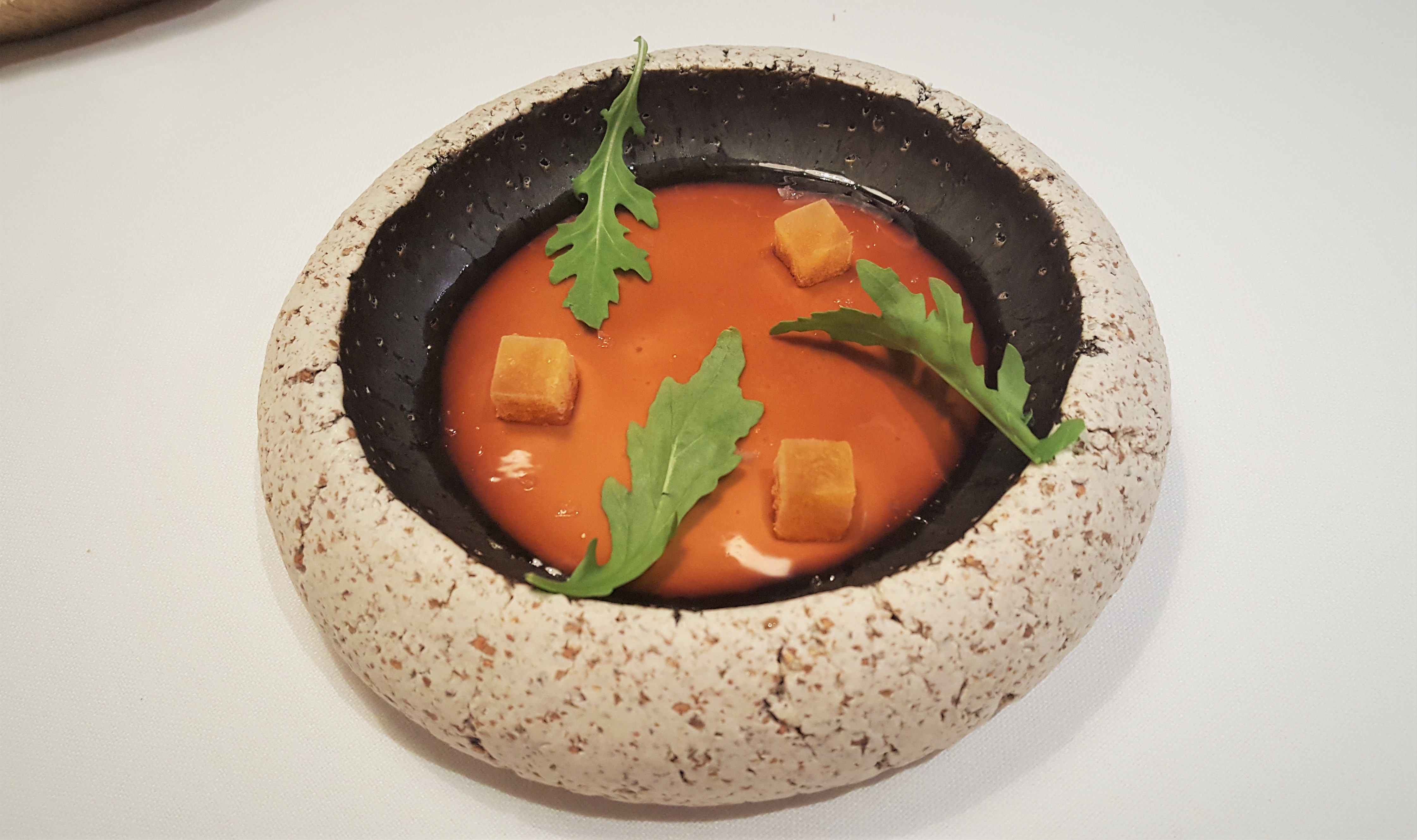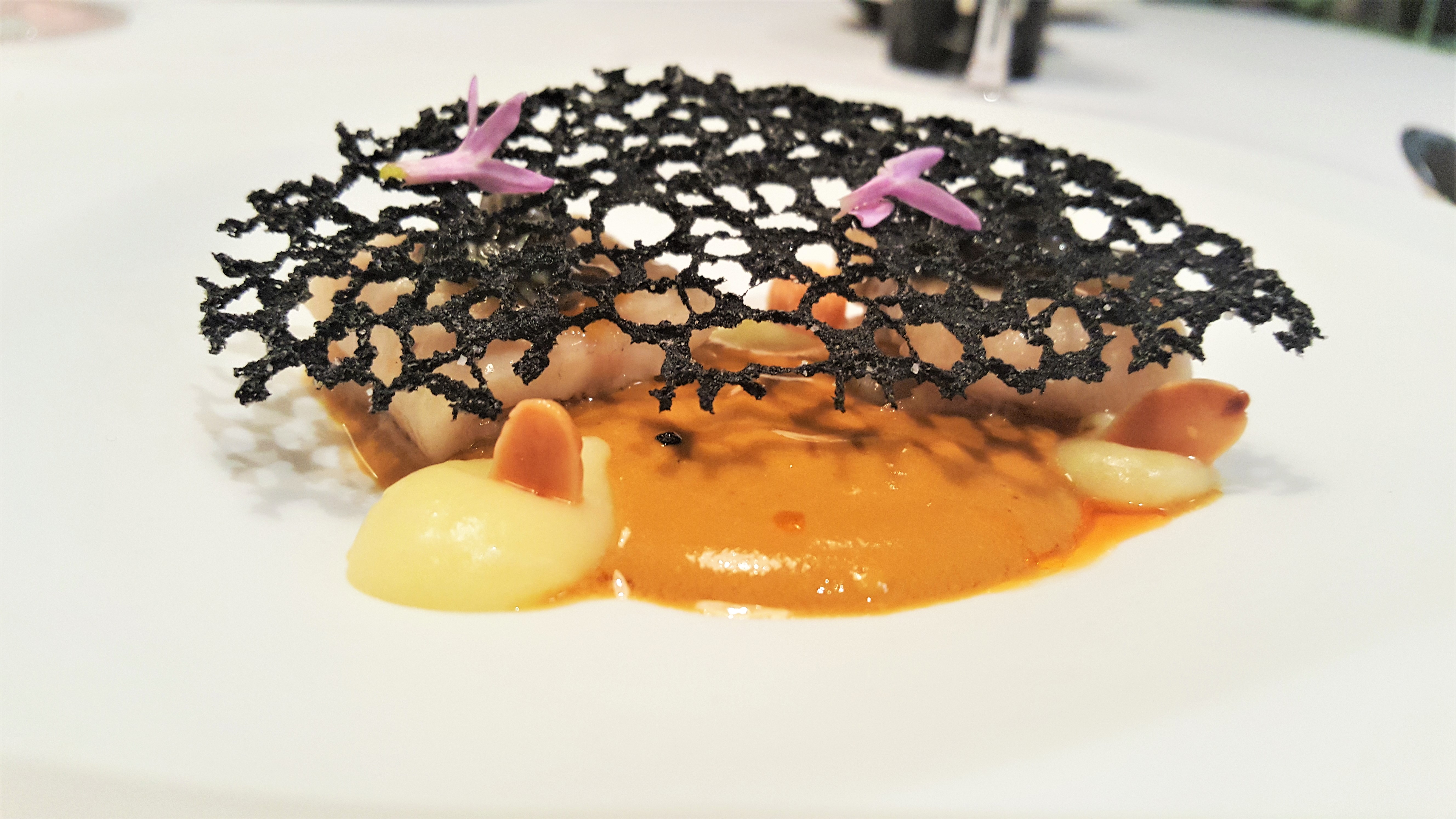 Now the dish I was waiting for, for many months…. 2 of my all-time loves combined…. Rum-Cola (Cuba Libre) with foie gras…. You must be sick to think of that combo! Wow Wow Wow, AWESOME, foodpairing at the highest level. With the frozen lime cubes on top, the velvety foie gras cream, heaven in Spain. No remarks? Not really, just that as it is my favourite drink, I tasted more cola than Rum, but that is just me I guess…?!