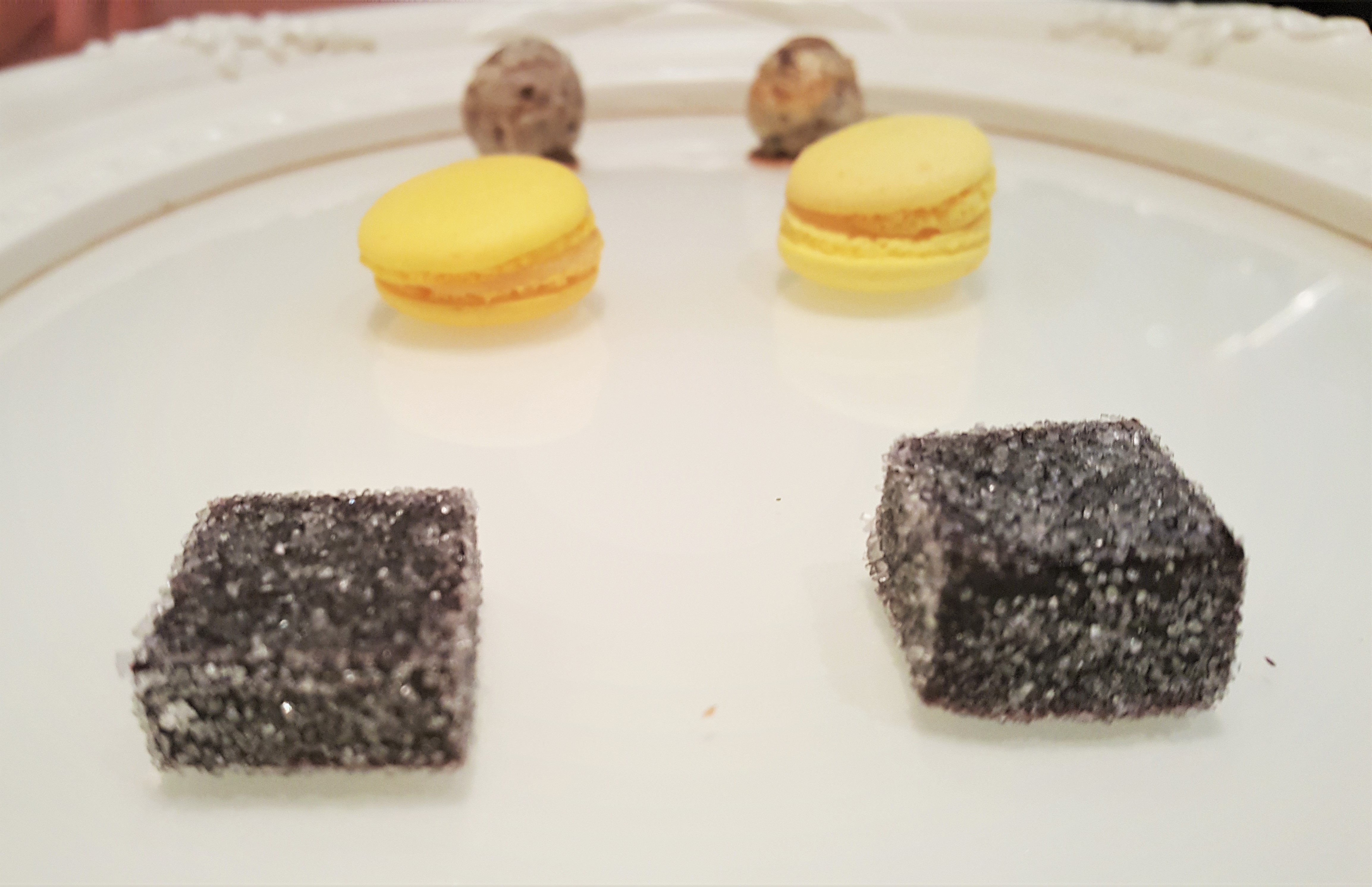 Coffee time with snacks and bites, nothing really special, quite standard even. Some gold choc in a black hand….haha