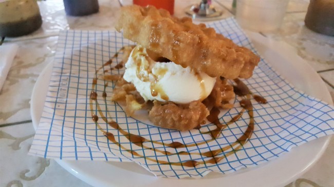 Almost full now, but the best dish of the night still had to come: Dessert time: Cinnamon pastry (like churros) with syrop and ice cream…. Sorry to my surgeon to whom I promised never to stretch my stomach again…