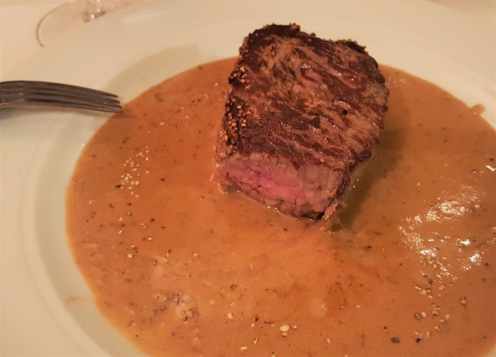 A good looking piece of meat for sure, but for me it was just over the “saignant” or medium rare as we call it. Also the meat was not as tender as expected. Maybe because it is one of the cheapest pieces on the menu? (still €29,-). Probably the ones costing €44,- a steak will be better, but I do not easily pay that for a piece of steak…