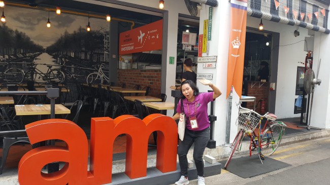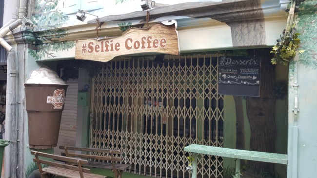 Through the Dutch street…. or at least corner…. Amsterdam food, let us skip that please, onto the famous selfie café (which was closed…):