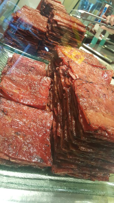 Like beef jerky but better… roasted and glazed I just can not describe it. very expensive and a special gift once a year it seems…. but the full flavour, stock of beef glazed made crispy but chewy, amazing. So full, but I could have finished this stack!