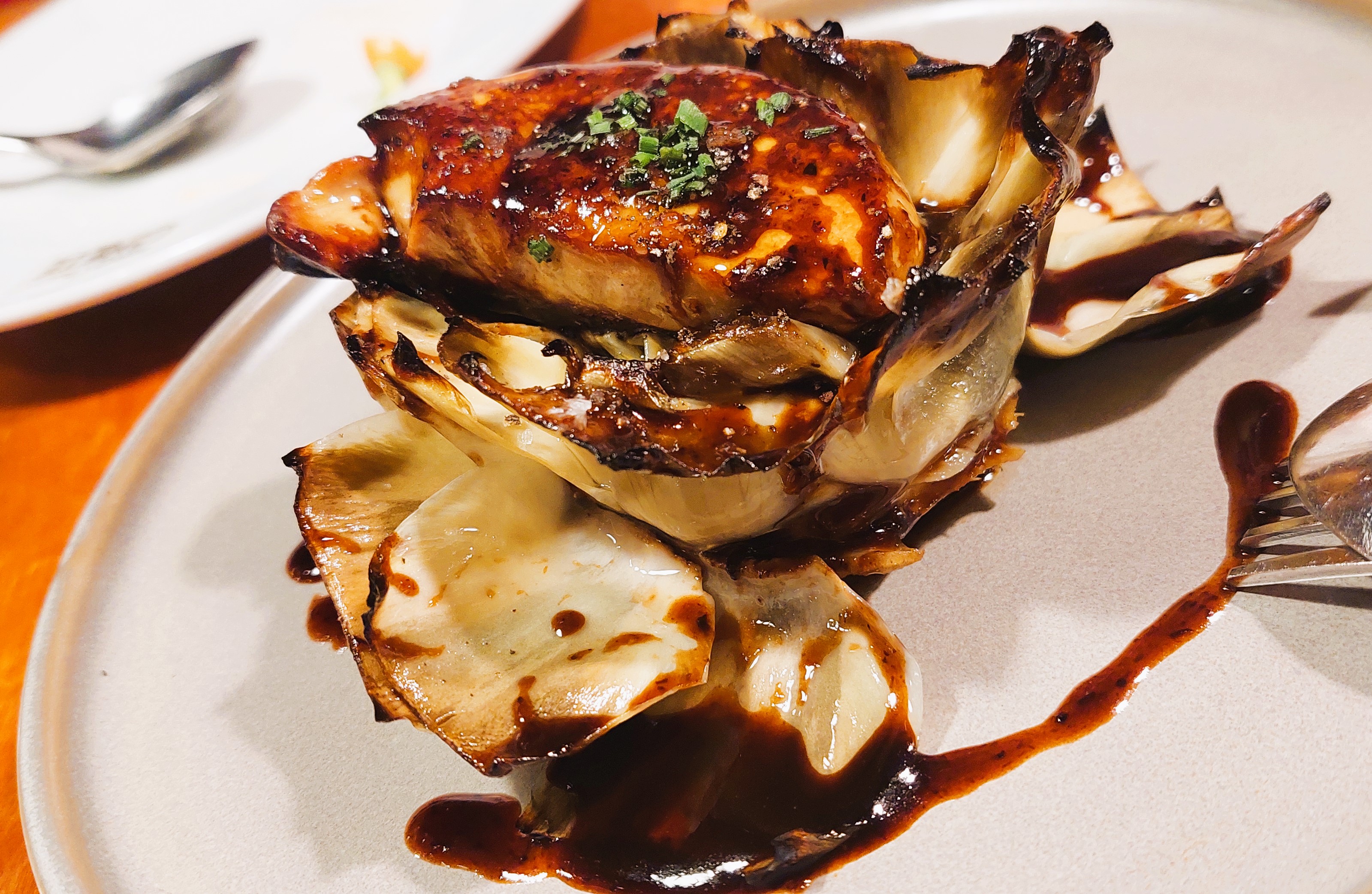 - Seasonal grilled artichokes with foie gras (fuck me, look at the movie below)